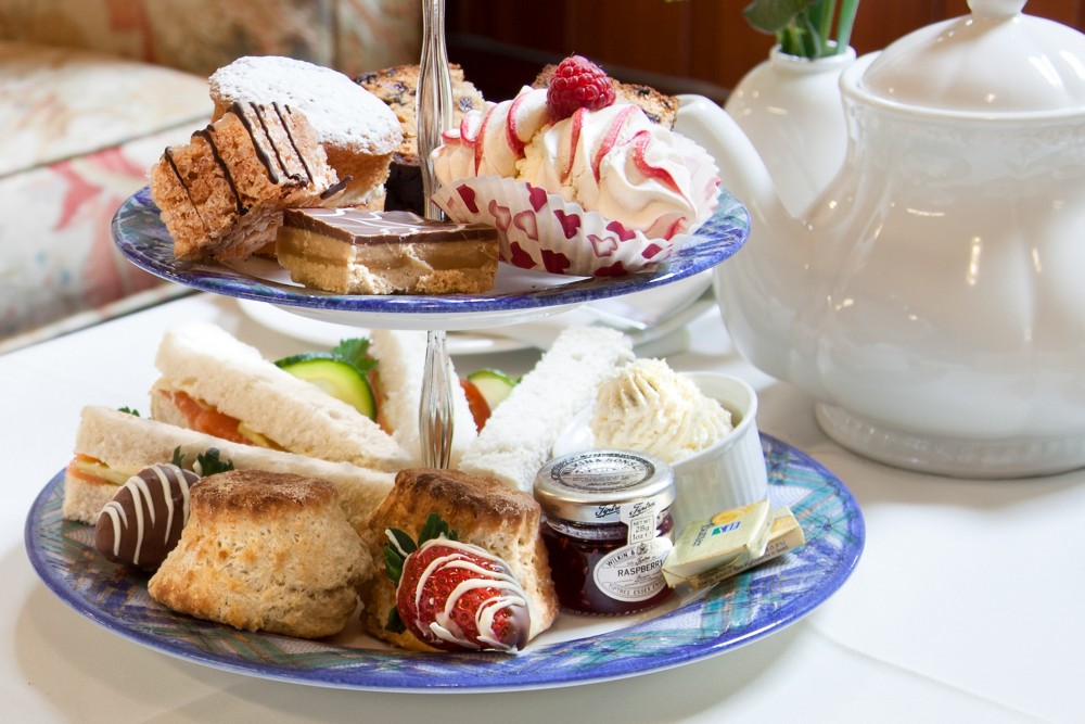 shortbread, scones with jam and clotted cream, and an array of exquisite